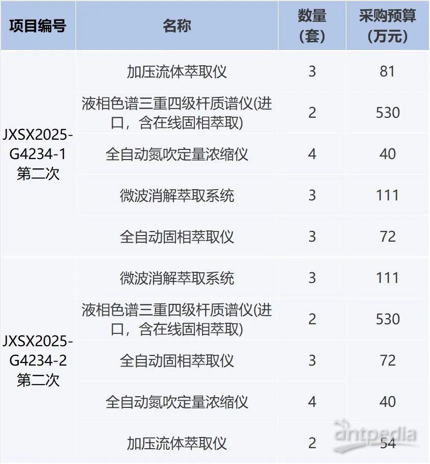 近日,江西省生態(tài)環(huán)境監(jiān)測中心就“監(jiān)測能力建設(shè)(二期)項目”新污染物調(diào)查監(jiān)測能力采購項目進(jìn)行二次招標(biāo),此次共招標(biāo)29套設(shè)備,包含多套液相色譜三重四級桿質(zhì)譜儀、微波消解萃取系統(tǒng)等,采購預(yù)算1641萬元。本次招標(biāo)提交投標(biāo)文件截止時間為2025年07月10日 09點(diǎn)30分。