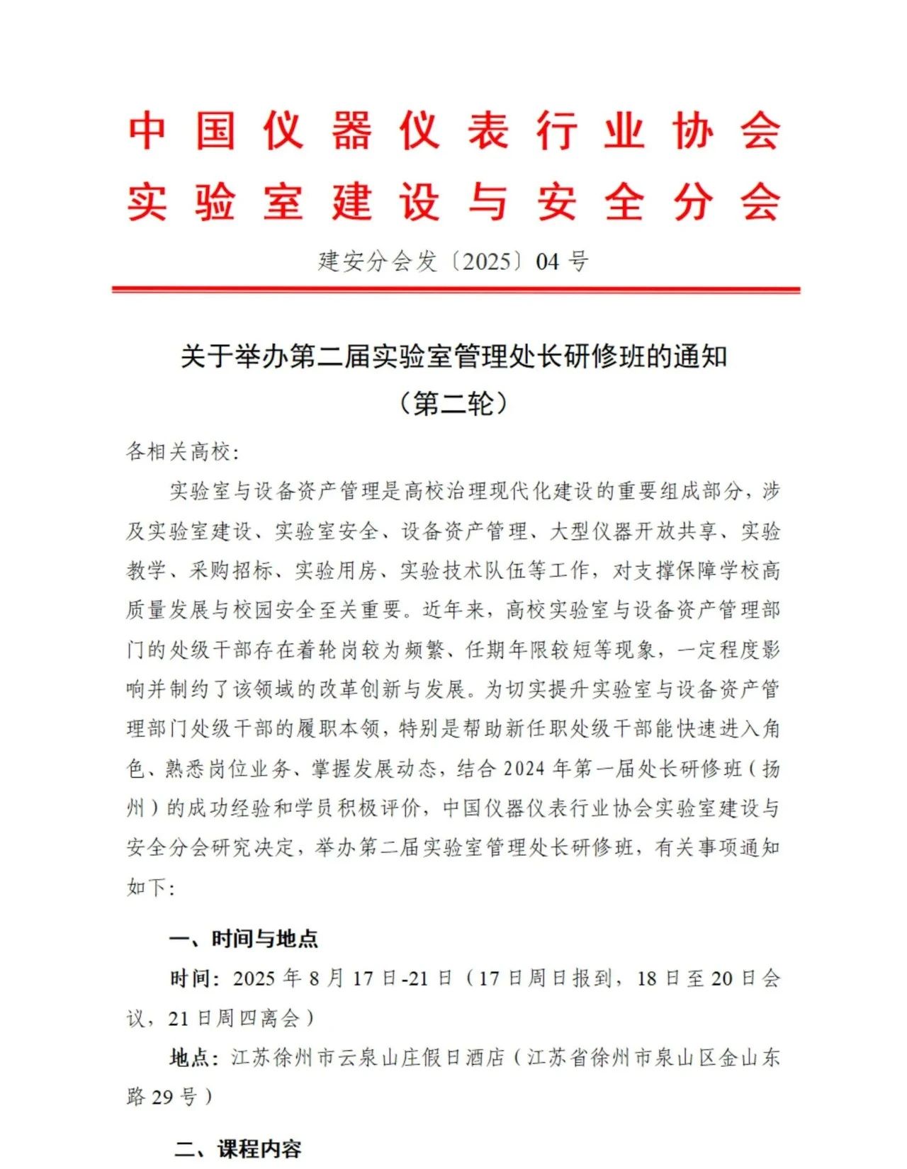 關于舉辦第二屆實驗室管理處長研修班的通知(第二輪)