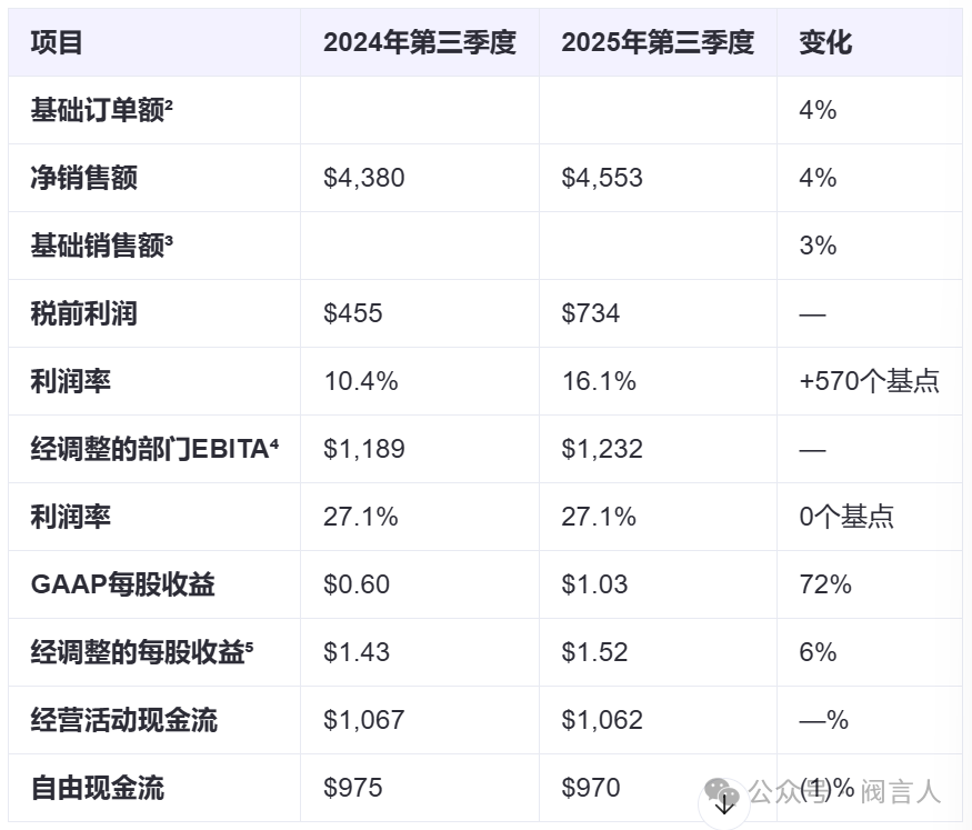艾默生集團(tuán)第三季度財報表(單位:百萬美元)