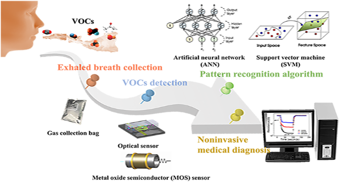 機器學習與模式識別技術賦予傳感器解析復雜氣體 “指紋” 的能力。浙江大學鄔建敏團隊基于石墨烯基嗅覺傳感器陣列,通過機器學習分析信號,結合 RF、Lasso、SVM 加權融合模型,提升了呼吸道感染類型檢測的魯棒性與準確性;瑞典林雪平大學與國家法醫學委員會團隊采用 32 個 MOS 氣體傳感器陣列,結合自適應機器學習算法,實現了法醫鑒定中 VOC 的非侵入、實時分析。