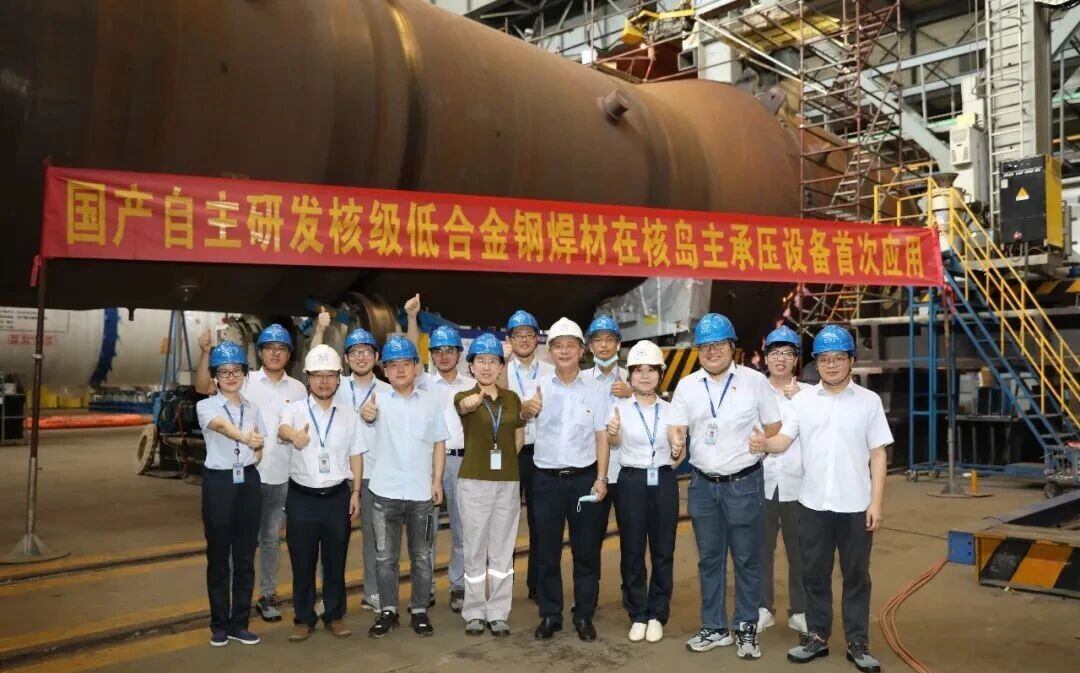 核一級設備用耐輻照、高強度SA-508Gr.3鋼用焊材料以“國和一號”蒸汽發生器為依托,2019年,東方重機、上海核工院與四川大西洋聯合創建核電焊接材料國產化產學研用平臺,合作期間,三方共同開展了不銹鋼、低合金鋼、鎳基三大類共18種牌號焊材的研發與應用研究。2021年6月,成功應用于“國和一號”蒸汽發生器最終環縫,無損檢測與理化性能一次性合格,實現了國產焊材在核島主設備上“零的突破”,標志著核電焊接材料國產化取得重大里程碑進展。