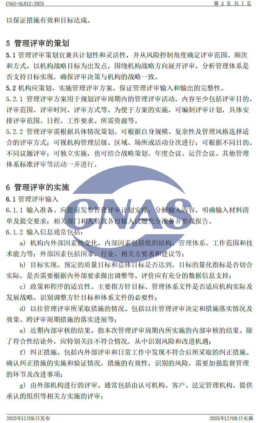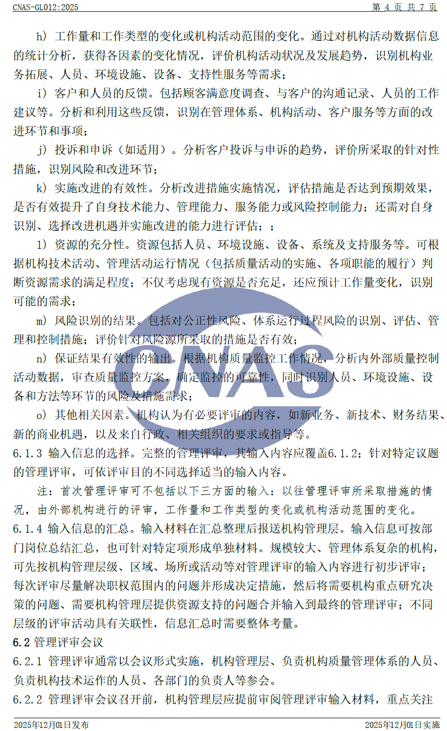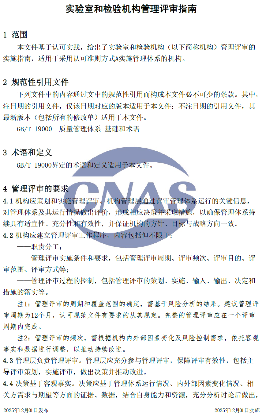 CNAS-GL012:2025 《實(shí)驗(yàn)室和檢驗(yàn)機(jī)構(gòu)管理評(píng)審指南》與CNAS-GL012:2018相比,除結(jié)構(gòu)調(diào)整和編輯性改動(dòng)外,主要技術(shù)變化如下: