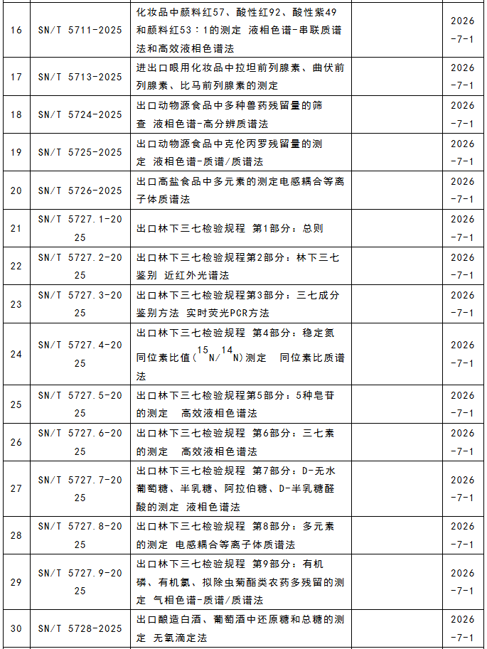 這117項(xiàng)行業(yè)標(biāo)準(zhǔn)涵蓋食品、化妝品、藥材等領(lǐng)域,涉及液相色譜串聯(lián)質(zhì)譜法、液相色譜-質(zhì)譜/質(zhì)譜法、高效液相色譜法、電感耦合等離子體質(zhì)譜法、近紅外光譜法、實(shí)時熒光PCR方法等檢測方法。