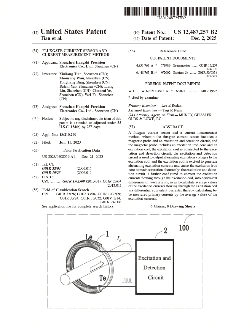 美國發(fā)明專利的授權(quán)需通過新穎性、創(chuàng)造性和實用性的嚴(yán)格審查。本專利的獲得,意味著航智的磁通門電流測量方案在技術(shù)路徑和實現(xiàn)方式上具備明確創(chuàng)新性與實用性。