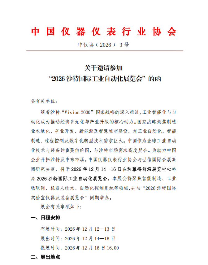 關(guān)于邀請(qǐng)參加“2026 沙特國(guó)際工業(yè)自動(dòng)化展覽會(huì)”